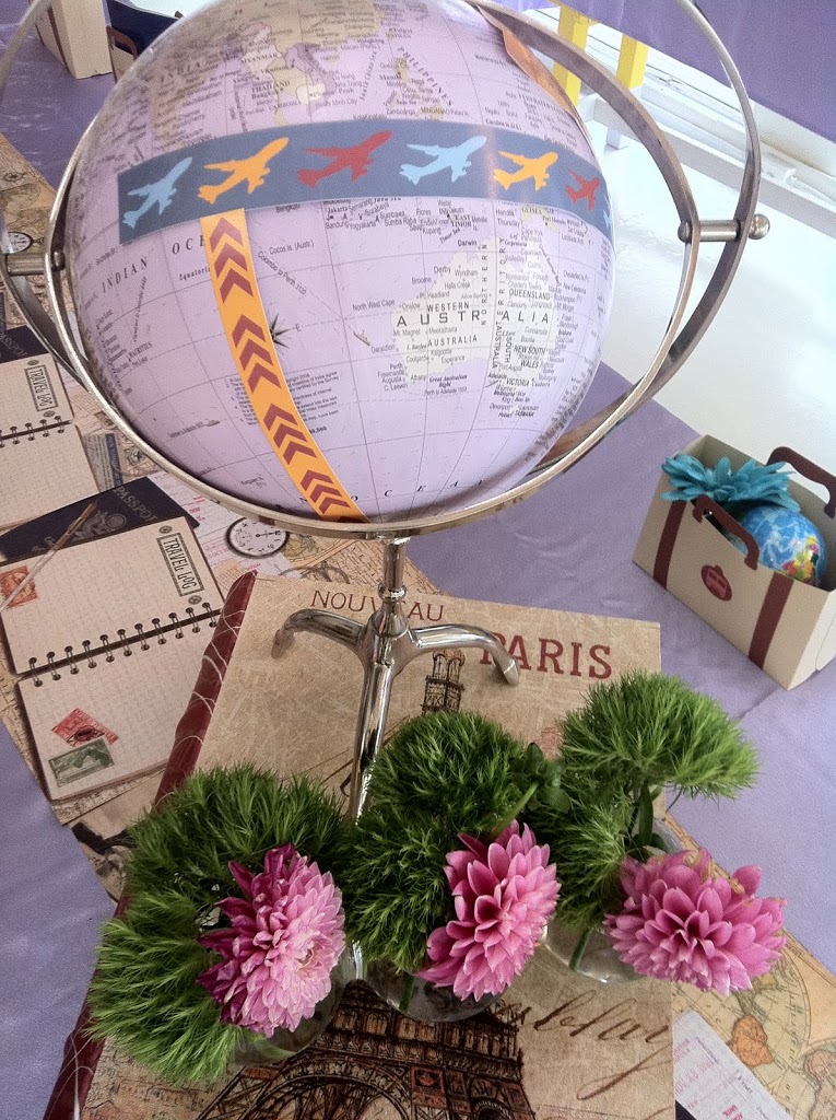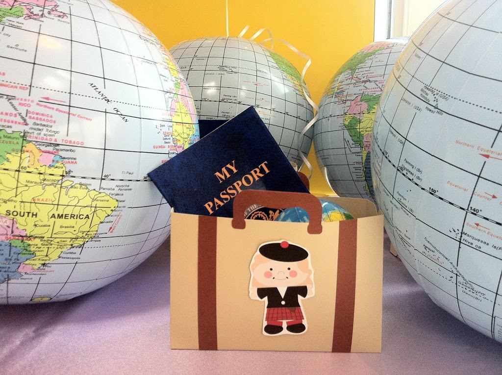 A couple of weeks ago I had the pleasure of collaborating with a super great mom on her daughter Madelyn’s party. Alyssa decided on “It’s a Small World” as the theme and the two of us got busy finding everything to make the party perfect. I sourced out some fantastic little suitcase favors and we printed the small world characters and put one on each case. Juliet found a fantastic lavender globe which also happened to be the birthday girls favorite color as our center piece. The goodie bags consisted of inflatable globes all kinds of different nationality hats, passport sticker books and it’s a small world puppets. To make the whole event even more special Alyssa had her husband greet each child and take their passport picture which went on their invitation which then turned it into a passport. It was a truly memorable party for one and all.