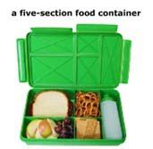 We LOVE these Lunchboxes. Lucinda and I are both going into our second school year using them for each our boys. We both loved them so, we now sell them at the COOP. Did you know that a typical American child generates 67 POUNDS of lunch packaging waste each school year! That is an astonishing figure. My kids go to a “no trash” school — which tries to get the kids to bring lunches that generate no extra trash (i.e ziplock baggies and juice box containers). We are officially superstars after showing up with our fabulous (and stylish!) GoGreen Lunchbox. The super cool (and insulated) exterior … which comes in lots of cool designs… holds a 5 compartment tray that seals with a turn lock so your food — no matter how gushy — doesn’t slosh into other compartments of the tray. It works great, looks great, and is great for the environment. What more can you ask for?