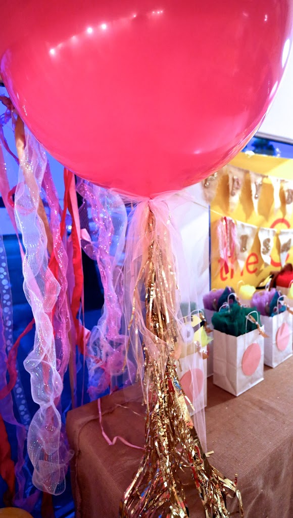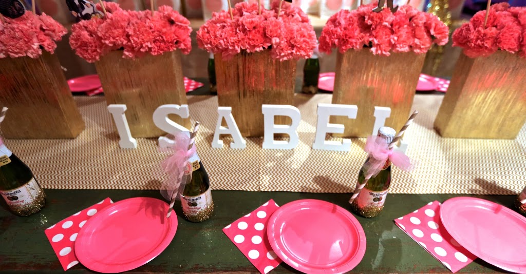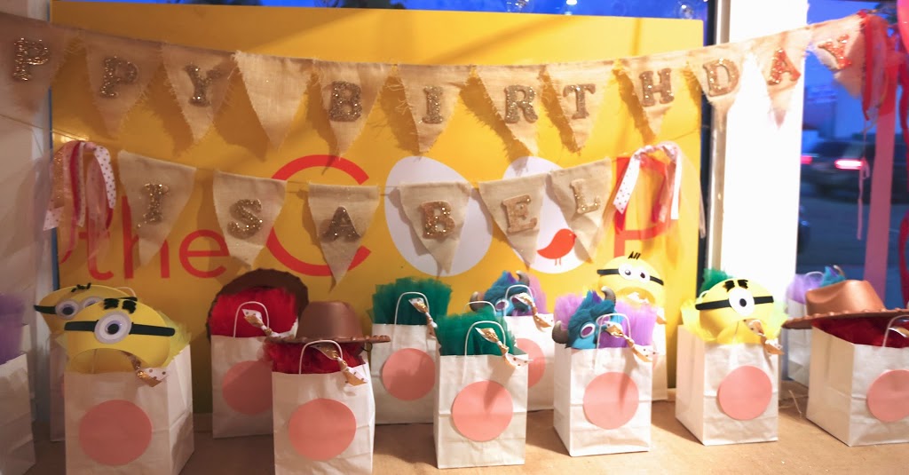 Ohhhh — I LOVE this party. This is one we did for a lovely 15 year old girl recently. She is a bit older than our “usual” patrons — so I got to go a little more sophisticated with the decor. The goodie bags were still super fun … and the party was all girls so we had fun with dress up elements!! We did different PIXAR characters — the “Jessie’s” got red tutus and cowgirl hats, the Minions got these hilarious Minion hats with a yellow tutus and yellow boas, the lady “Sullys” got turquoise tutus, a purple boa and a Sully mask, and the “Mike Wasowoski” girls got a green tutu and boa and Green wig. They were such a hit — the SECOND each girl arrived she ran over — grabbed an alter ego for the evening and got dressed! They were so playful and fun… makes me hopeful that my own little girl will still be sweet when she’s 15!!! For the decor — I just went with pink and gold glitter, basically! Pink carnations in gorgeous gold vases ran down the whole table — and I made cut outs of the birthday girl’s favorite PIXAR characters to include in the centerpiece. I also did her name in wooden block letters in front of the vases. The birthday banners were all glittery gold an natural burlap with loads of pink ribbon accents. I kept it COOP-ie with the pink dotted napkins and LOVED the mini glass Martinelli’s apple juices — glammed up with glitter and tulle bows. Love love love them!! You are NEVER too old to have a FAB bash at the COOP — and I think this party proves just that!!!