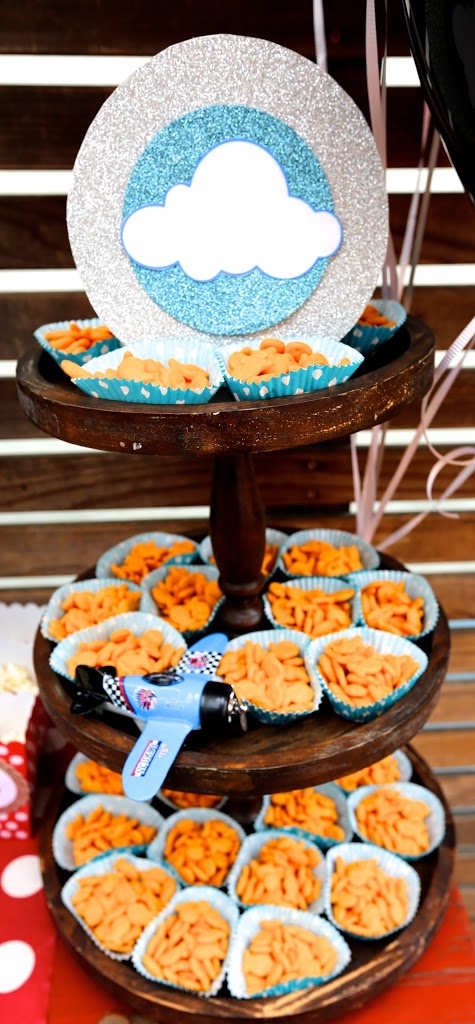 Here are some shots from a fun Plane party we did recently. It was a Whole COOP and CABOODLE package… so we handled the cupcakes (mom also asked us to add a cake… which we did!), fresh flowers, large lollipops, adult food and some extra snacks and special juice and cups for the kiddos – in addition to the fabulousness you get (goodie bags, decor) you get with a theme party at the COOP. I really wanted to figure out a cool and fun centerpiece… I was thinking of clouds. I was so excited when I thought of using the FLOWERS as clouds– as well as some foam cut out clouds on sticks coming out of the flowers arrangements (hydrangeas and white carnations…. ) I LOVE how it turned out. Clouds, clouds, clouds… I used a lot of cloud images for this party. The cloud looked more cool and modern than a plane image, I thought. Mom was so so incredibly sweet… and she love love loved every bit of it. Her daughter didn’t want ANYTHING girlie… but I still think the party had enough of a feminine feel to make it extra special!
