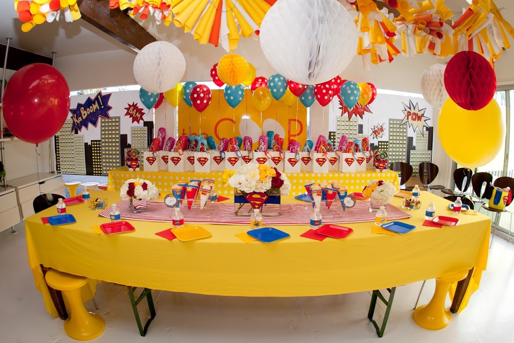 No availability at the COOP on the day you want to party? Got an amazing backyard you want to party in? Or a park? Or the beach? You name the place and now the COOP will come to YOU! We will send our darling COOP-ettes out to your desired location and they will set up and help host a fabulous cool COOP style soiree wherever you like!! Theses are some pics of a SUPER fun SUPERHERO party we did in a backyard in the Hollywood Hills recently. Giant balloons and disco balls floating in the pool? Check. An amazing treat table replete with all sorts of cakes/ cupcakes/ candies and treats? Check. A dedicated table for the little revelers complete with superhero costumes and an amazing city scape centerpiece? Double check! We are so thrilled to be venturing out beyond our four walls and bringing the COOP fun and festivities all over the LA area! Check out our “PARTIES at HOME” chick on website for more details (www.thecoop-la.com)… and check out SHARK TANK this FRIDAY, April 5th to see THIS party in action!!! They actually came and filmed us set it up to use during our “update”! Super exciting…..