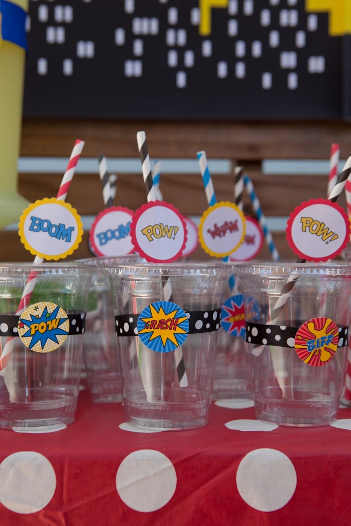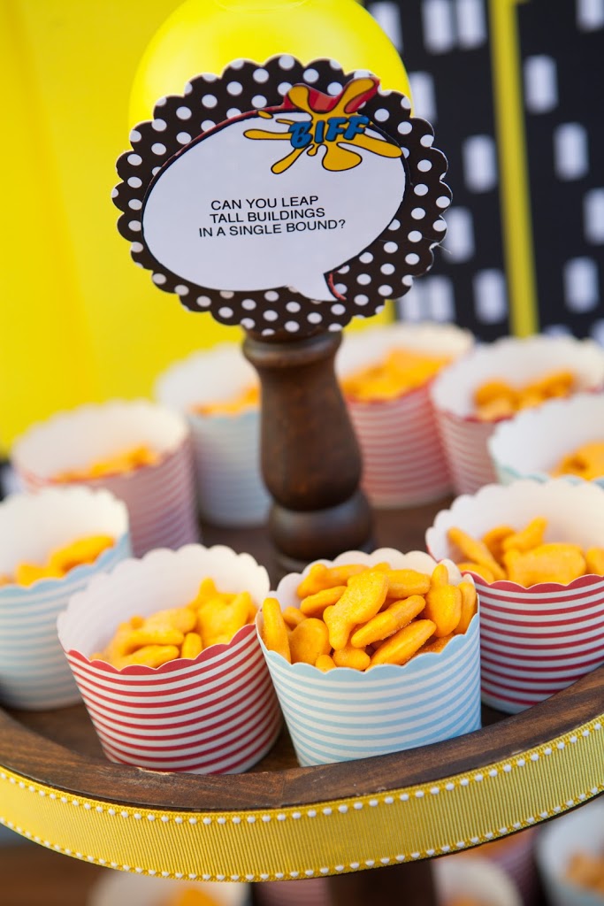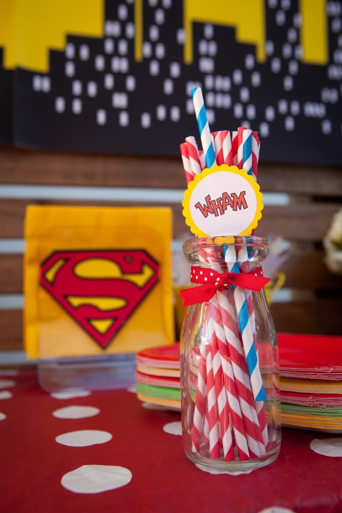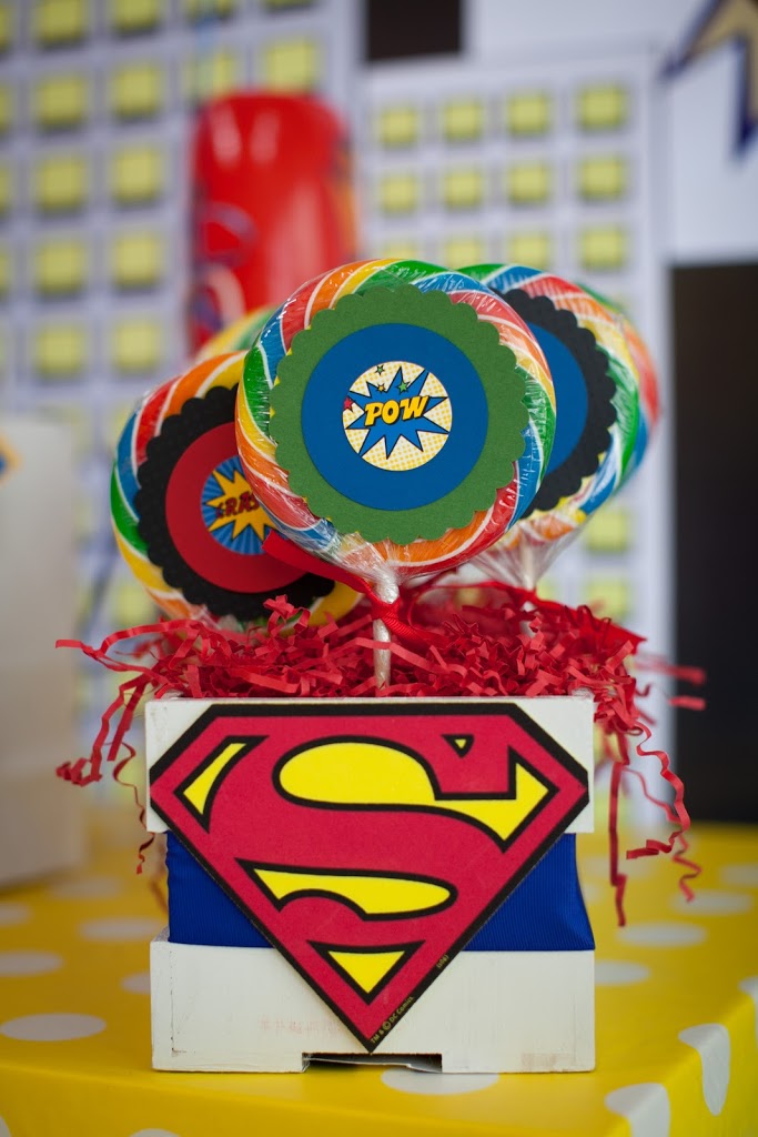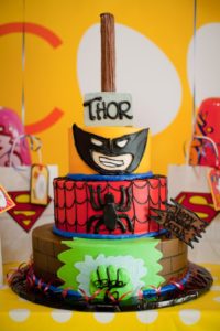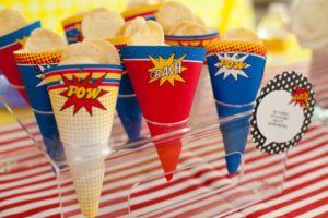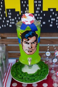 I know we have a plethora of super fabulous Superhero party pics from Lucinda’s previous post…. but I just HAD to share a few more of my favs from one I did recently. The amazing and gorgeous Charlize Theron chose the COOP to host her little boy Jackson’s first birthday. We did it on a Tuesday – which was his actual birthday – making it all the more special and we were really thrilled to pull out all the stops fo rthis special little guy and his wonderful mom. I made a super amazing birthday banner JUST for Jackson out of dotted wrapping paper (cut into triangles as the flags) and comic books (the letters) — it turned out so so great! I really love it and have used it many times since!!! Charlize was so so lovely — and I can honestly say she was one of the warmest, happiest mommies I have ever seen. She was just THRILLED with the party, and the COOP, and the special day we helped make just for her little guy. The COOP was filled that day with lots of wonderful friends and family who all had a BLAST celebrating Jackson’s big day — superhero style!!!