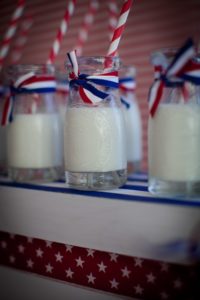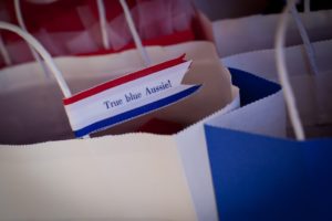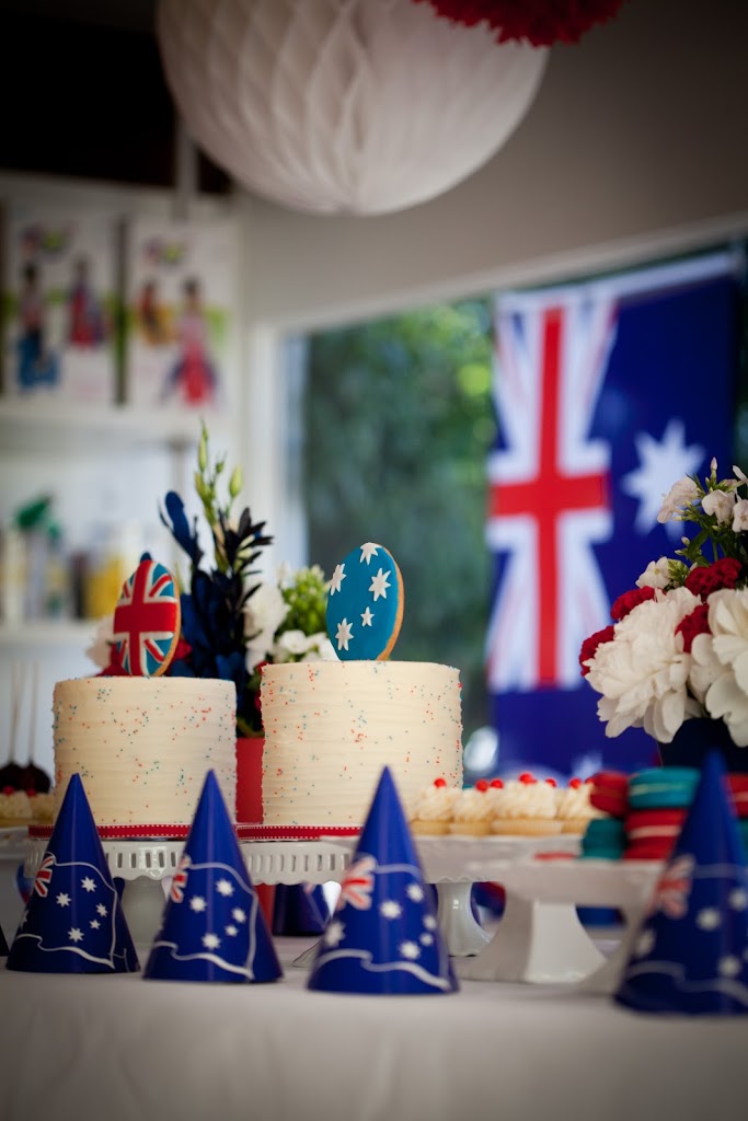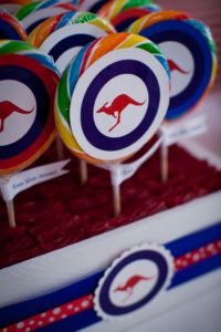 It is always a challenge for me when my two sons Dash (9) and Abe (6) have a birthday as their birthdays fall within 5 days of each other, meaning that I need to come up with a theme that they both agree on. This year to avoid the Star-wars versus Harry Potter dilemma I decided to do an Australian theme which is close to my heart as I grew up in Perth West Australia. Once both boys agreed that this was a pretty cool idea I went full steam ahead. As I wasn’t particularly fond of the Australian colors of green and gold I decided to go with the colors of the Aussie flag RED, WHITE and BLUE and once I made that choice everything fell into place. I went nuts on this party I envisioned a really cool table with lots of treats and had the uber talented Julie of Blue Cupcakes come in to assist me in creating the magic. I told Julie I wanted red, white and blue parfaits in little jars and blue and red macaroons. I let her use her own creative genius on the cakes and I went to work on the little milk jars, spray painting the white bases finding the perfect ribbon and perfect straws. I used Australian Vegemite jars as vases, ordered Aussie flags to hang and Aussie party hats. I knew my lollipop crate needed some red so I popped in some Aussie licorice to give it that pop and it worked brilliantly. I spent night after night cutting, pasting and gluing and I loved every minute of it. Juliet told me that I had to make shark jello’s and at the very last minute I went for it and they were one of my favorite bits. We had tacos and fosters and a kangaroo margarita station and it was quite possibly the best AUSSIE bash ever.. One of my absolute favorite blogs the Hostess with the Mostess featured the party so if you want more Aussie pics check it out!