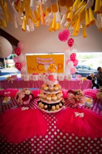 Life has a wonderful way of giving you what you are looking for at exactly the right time. Juliet and I have been working our hearts out at the COOP over the past four years pouring everything we have into each and every party and because of that we have been blessed to book up our parties months in advance. It was from one of these parties that a friend of a COOP client had seen pictures of, an Elmo party (goldfish party favors and all) that we got our first opportunity to create a COOP Party at some ones home. The friend had just LOVED what we had done for our clients Elmo Party but the dilemma was we had no times available for the weekend she wanted so she innocently asked “Would it be possible for you to bring all of your wonderful creativity and passion for parties into my home?” WOW – the question that changed it all – ABSOLUTELY we said and we set to work. Juliet and I really believe in all the little details and every portion of this party was perfect. From the pink Minnie balloons surrounding the fence to the incredible favor table with all kinds of delicious treats. Most of everything we do is custom and that is what gives our parties such a lovely special feel. The setting of this party was incredible and so we made it fun with lots of pink and balloons and flowers. We bought in the wonderful TWINKLE TIME and of course Minnie Mouse. Juliet and I where so thrilled with how it turned out (we even had some of the super chic guests expressing they had never seen a kids party like it!) That we thought “wouldn’t it be great if everyone could have a COOP party at home no matter where they lived? So we created the COOP CRATE idea where we ship all the things you need to have a SUPER COOP PARTY right to your door – or you can pick it up in Los Angeles. Check out all the PARTY 2 GO and COOP CRATE details on our site and get your COOP PARTY ON!!