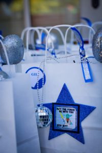 Our second COOP Party 2 GO was for a very special young man named Jett. I just loved this little guy he has SO much personality and charm so it was no surprise when he chose a Star-wars/Dance/Disco Party as his theme. Mom and dad really helped out on this one and we worked very closely to bring together all the incredible elements. We had Yoda Soda, Disco dance dress up, mirrored vases with gorgeous peonies a cool graphic dance floor with an even cooler D.J, a bouncer and a airbrush tattoo artist. It was a very hot LA day but none of our little Jedi – groovers seemed to notice as they danced the afternoon away. We LOVE our parties at the COOP but how great is it that we can now bring our secret magic into any home!